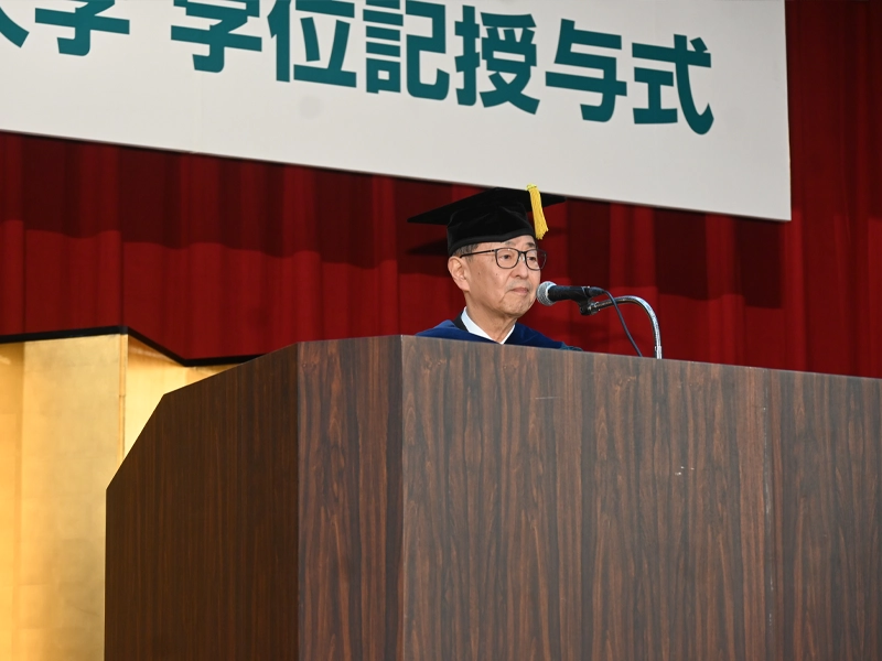 続いて備酒学長が式辞を述べ、卒業生・修了生にお祝いの言葉を贈りました。(学長式辞全文はこちら)