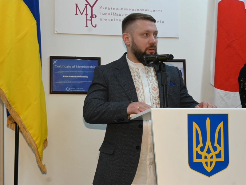 乾杯のあいさつは同センターの運営を資金面でサポートしている株式会社OSPホールディングスの松口正代表取締役社長が行い、「このセンターはアジア太平洋地域では初、世界でも5番目のウクライナ専門研究機関です。私たちは力による平和ではなく、理解による平和を実現したいものです」と呼びかけ、大きな拍手を浴びました。