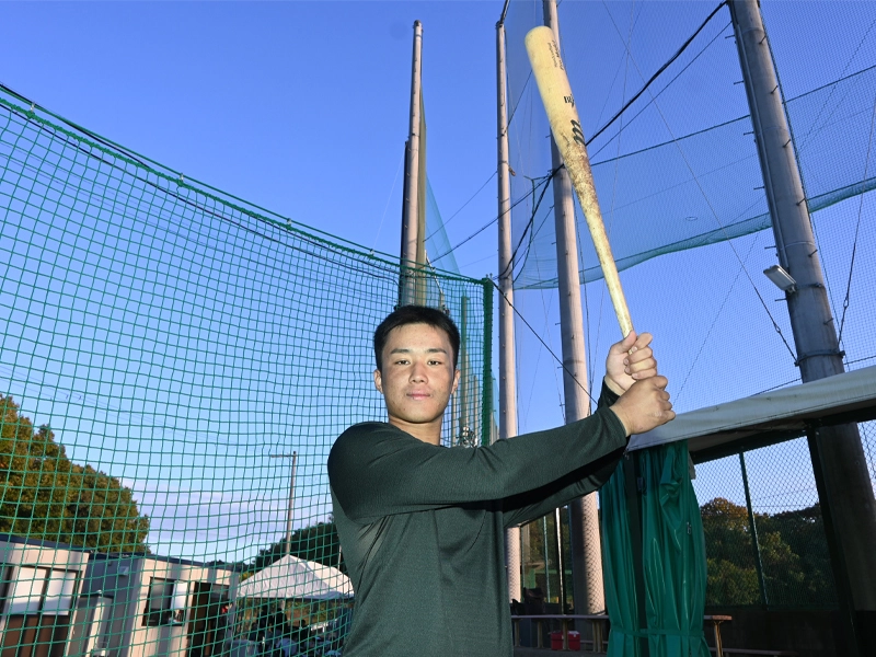 森川主将(経済学部2年次生)は、全12試合に出場し、43打数13安打で打率3割2厘をマークしました。4番打者として勝負強さを発揮した一打は、10月13日の京都産業大学戦で五回表2死満塁から放った決勝の逆転3点適時二塁打。「チームが苦しい時にしっかり打てたのが良かったです。捕手としてはキャッチングの技術など守備力をさらに鍛えます。来季はベストナインを目指し、主将としてチームの成績アップに貢献します」と話しています。