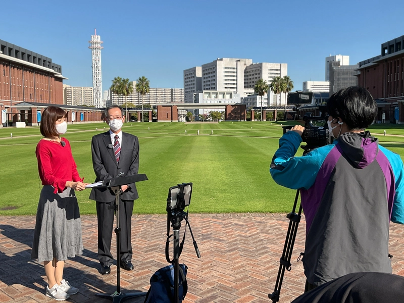 前半は大学の歴史や特色などについて中村恵学長がインタビューに答えました。中村学長は、1966年創設の本学と、今年創立110周年を迎える学校法人神戸学院の歴史に触れ、「神戸で最大規模の私大、文理融合型総合大学」となった現状を説明しました。さらに「地域の住民・産業界と共に進化する大学」を目指すとした大学憲章の一部を紹介し、「地域とともに、地域の方々の協力を得ながら大学運営しています」と語りました。