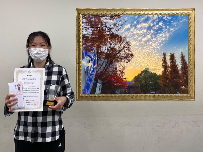 本学のキャンパスライフが伝わる写真と、その写真にまつわるエピソードを募集しているフォトコンテスト「神院大キャンパスライフの魅力」の年間応募作品の中から最も魅力ある作品に贈られる賞「フォト・オブ・ザ・イヤー2023」が決まり、4月12日に有瀬キャンパスで表彰式を行いました