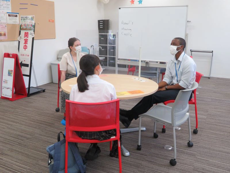 English Plaza(い~ぷら)体験では、ネイティブの先生との会話に、高校生は驚きながらも楽しんでいる様子でした。