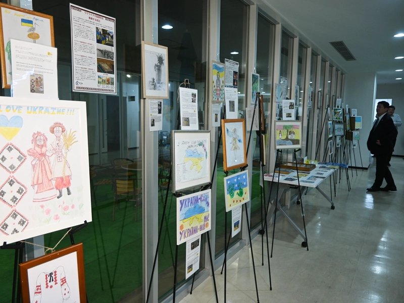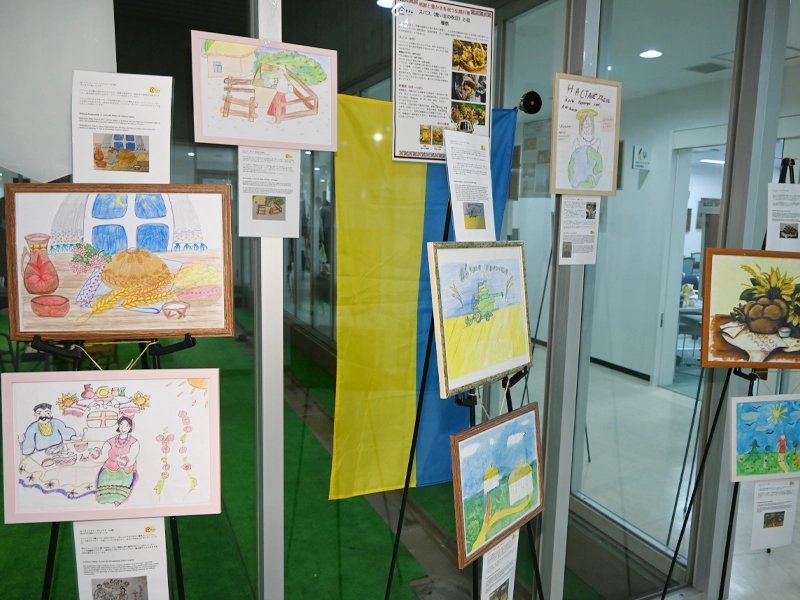 ウクライナの戦争被害者や子どもたちを支援している一般社団法人「ドドム」主催の絵画展がポートアイランド第2キャンパス1号館4階の在神戸ウクライナ名誉領事館で開かれています。
