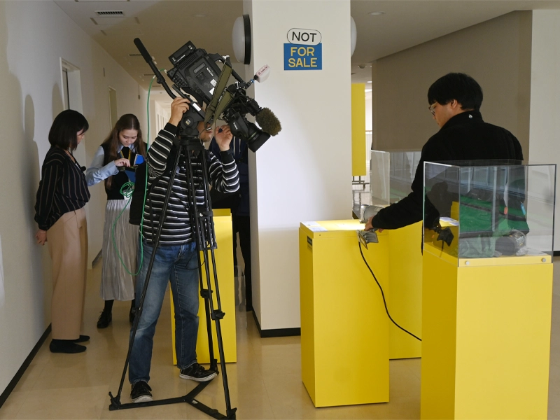 ウクライナのパビリオンに展示されていた戦時下の状況を伝える物品の一部はポートアイランド第2キャンパスにある松口正記念ウクライナ研究センターに譲渡されることが決まり、運搬作業とお披露目の準備が進んでいます。同センターの岡部芳彦所長が経緯を説明し、ウクライナ出身の本学大学院人間文化学研究科院生のトライノ・アンナさんが撮影取材に応じました。