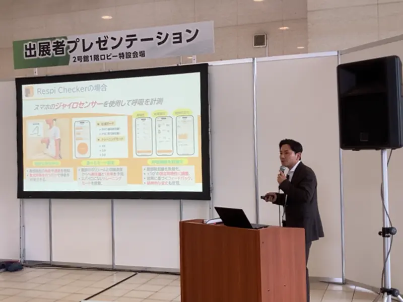 「国際フロンティア産業メッセ2025」が、9月4日~5日に神戸国際展示場で開催され、総合リハビリテ-ション学部の田代大祐講師が「呼吸測定で新習慣」と題して、スマートフォンで計測できる呼吸データで創る未来の健康習慣について、ポスター展示や出展者プレゼンテ-ションを行いました。