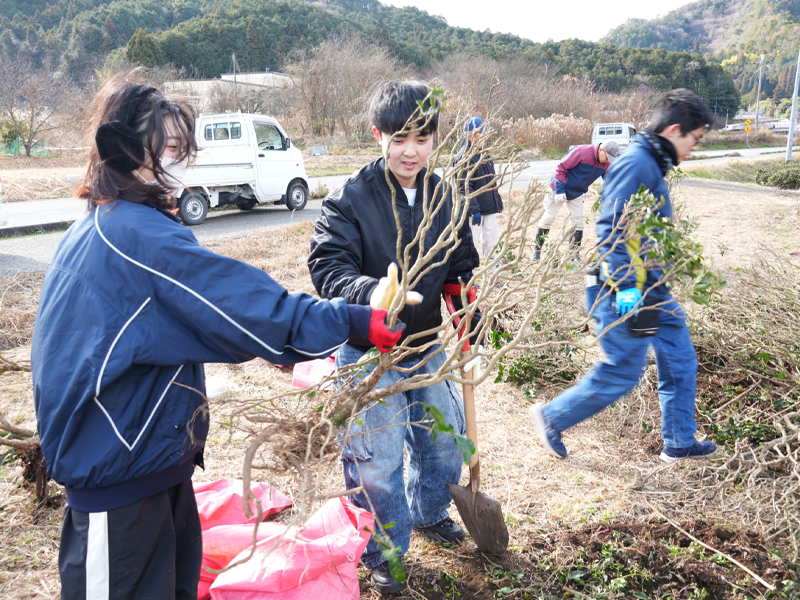 現代社会学部の菊川ゼミ生が丹波篠山茶の木をポートアイランド第1キャンパスに移植しました