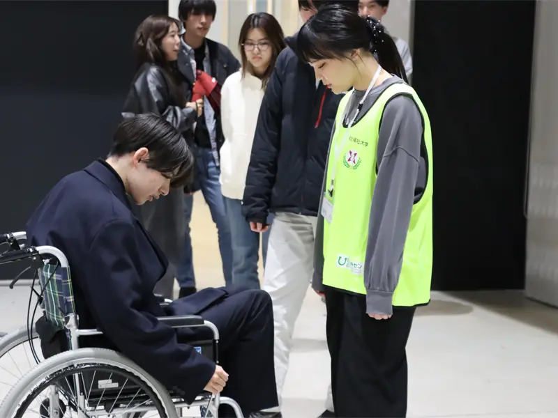 また、工学院大学は学生自治常任委員会が非常食の配布を行い、東北福祉大学は車椅子搬送体験と高齢者疑似体験を出展し、参加者は災害時にハンディキャップのある人たちがどのように感じるかを疑似体験しました。