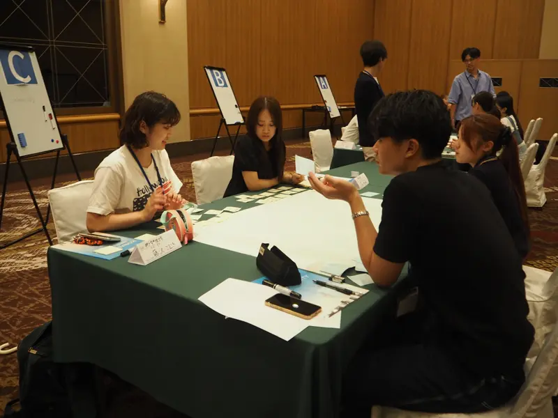 キックオフイベントでは、大学混在の6チームに分かれ、約6時間にわたるプログラムに取り組みました。まず、アイスブレイクとして、メンバーの共通点をもとにチーム名を決めるというミッションに挑戦。初対面のメンバーに緊張していた学生たちも、共通点を話し合うことで緊張がほぐれた様子でした。