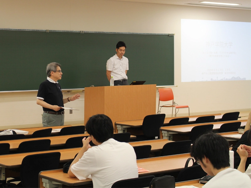 神戸市企画調整局政策課の森田暁氏が6月19日、「みんなで描く未来 ワクワクする神戸市~神戸の未来を考えてみる~」をテーマ共通教育科目「地域講義ⅡC(自治体の都市政策)」で講演しました。