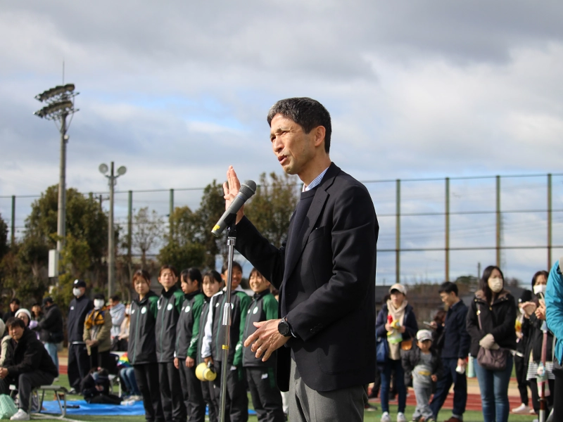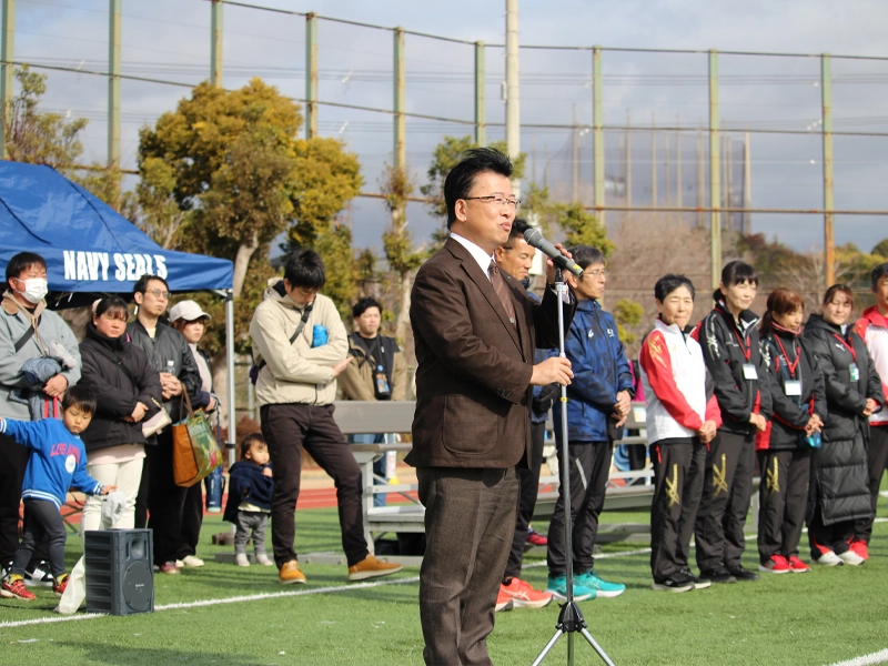 開会式では、神戸市西区の豊永太郎区長と、本学の山下勉副学長が挨拶を行いました。山下副学長は、本学が2026年に創立60周年を迎えたことに触れ、「有瀬キャンパスは課外活動の拠点であり、西区との協定に基づいた連携事業を大切にしている。次のオリンピック競技で追加されるフラッグフットボールやラクロスをいち早く体験し、楽しんでほしい」と参加者にエールを送りました。