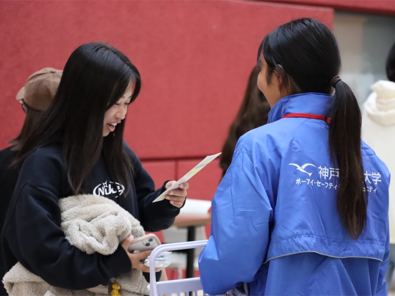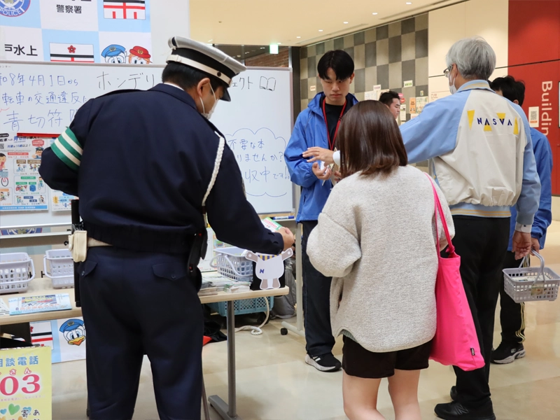 活動最終日の11月28日は、神戸水上警察署、自動車事故対策機構ナスバと連携し、犯罪被害者支援活動の啓発や、特殊詐欺についての注意喚起、さらに2026年4月1日から自転車の交通違反に「交通反則通告制度(青切符)」の適用が開始されることを、学生らに呼びかけました。