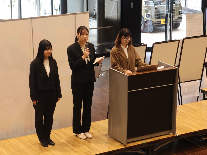 ポートアイランドキャンパスに所属する3人の学生で構成されるチーム「ぽ~愛」は、六甲アイランドの国際色に着目し、月替わりで異なる国のお祭りを行う企画を発表しました。服飾専門学校との連携による民族衣装の着付け体験や、ホテルとのコラボによるテーマ国別ランチ提供を提案。さらに、テーマ国の音楽ライブやダンスショー、子ども向け文化体験ワークショップなどを通して、地域の回遊性向上と賑わい創出を目指す取り組みを提案しました。