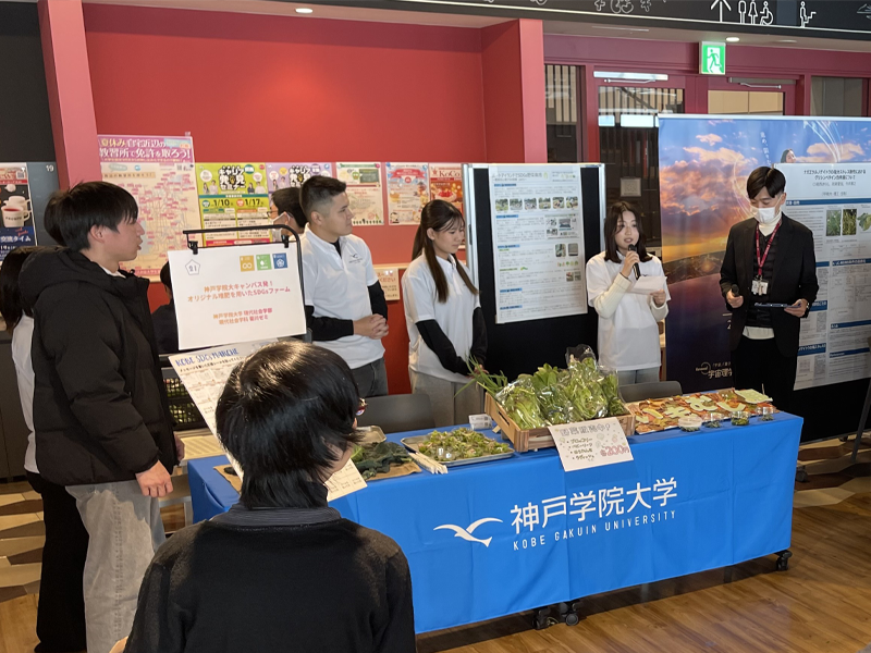 一般社団法人大学都市神戸産官学プラットフォームが主催する「大学都市KOBE SDGsマルシェ」が12月7日に、甲南大学の岡本キャンパスで開催され、本学からは3団体が「SDGs チャレンジピッチ」で発表を行ったほか、「SDGs アクションブース」に5団体がブースを出展しました。