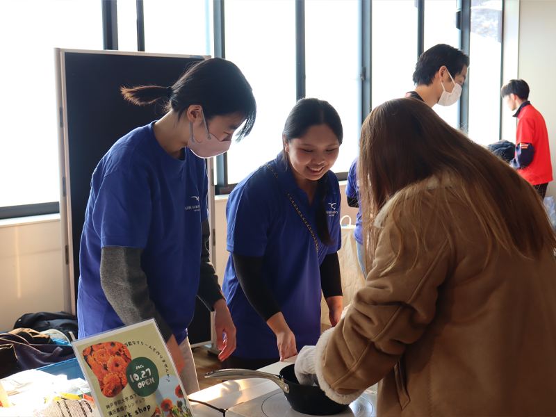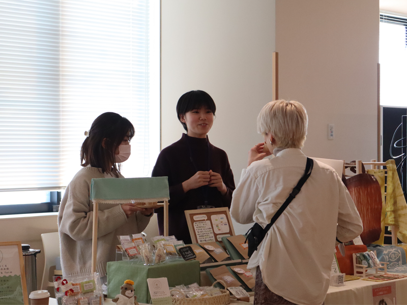 薬学部3年次生の大西花歩さんは、高齢化により休耕田が増えていく町の現状に気づき、実家の休耕田をどうにか活用できないかと思い立ち、ハーブ栽培を行っています。ブースでは、ブレンドティーなどのオリジナル商品を販売し、ハーブの魅力や農業の現状などを来場者へ伝えました。来場者からは、「多くの学生たちのSDGsの取り組みを知ることができた」「体験イベントも多く、子どもたちも楽しみながら学ぶことができた」といった感想がありました。