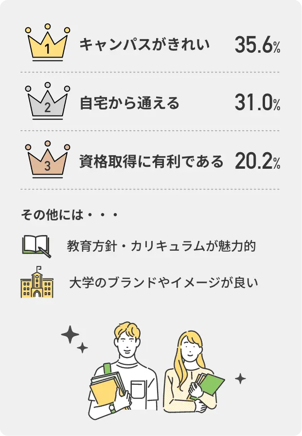 学内環境やサポート等、学生への支援体制の良さから信頼できる大学であると認識しているため。