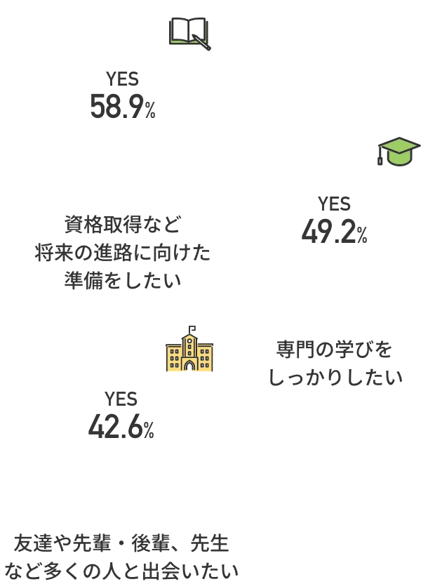 自分の学部の施設や勉強がとても充実しており、この大学に来て良かったなと思えるから。