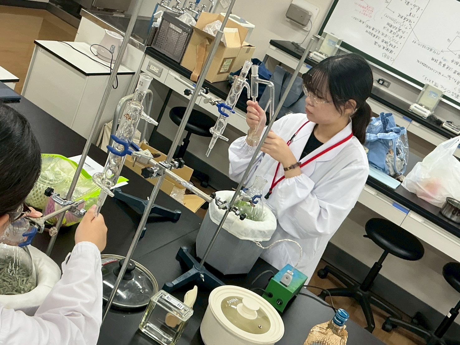 第1回目では、参加者との交流を通じて日頃の悩みや不調を丁寧にヒアリング。そこで得たニーズを踏まえ、大学のラボではハーブの有効成分の抽出方法に関する実験を行い、より効果的な活用法を検証しました。